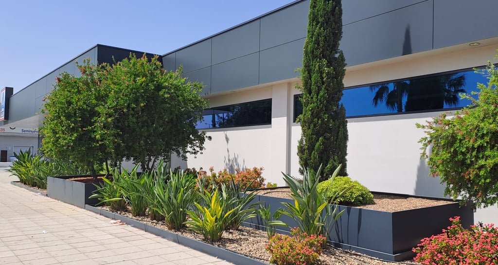 Supermercados Aldi hace una apuesta por una jardinería de marca sostenible. Se diseñan grandes contenedores que protegen los espacios ajardinados de usuarios poco respetuosos y se hace una selección de plantas con poco mantenimiento.