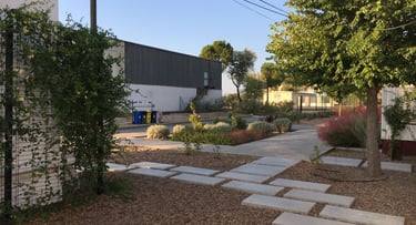 En la instalación industrial y provisional del Grupo México diseñamos un jardín amable y relajante para que el joven equipo de este grupo, recién ubicado, se sintiera más cómodo y conforme con el entorno.