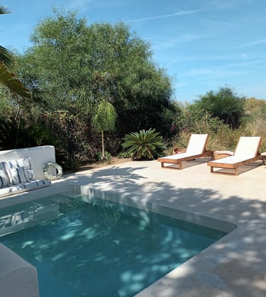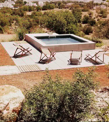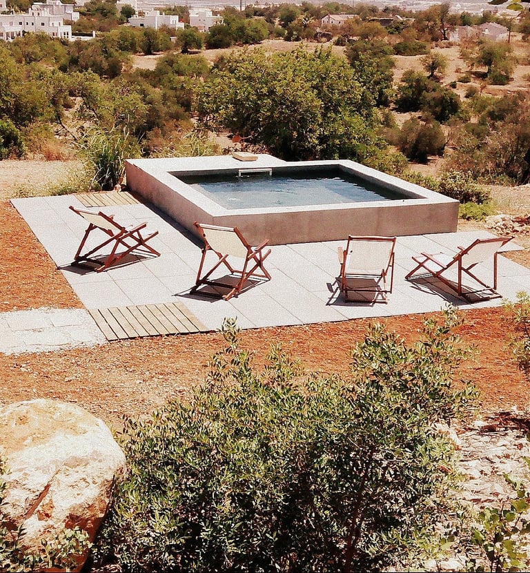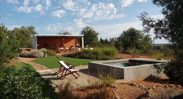 Monte do Álamo es un hotel rural familiar en una finca de producción ecológica. Las intervenciones han sido muy respetuosas con el medioambiente y la topografía. La integración paisajística y la vegetación mediterránea naturalizada, con poco mantenimiento y bajas necesidades hídricas hacen que este lugar poblado de algarrobos sea típicamente algarviano.